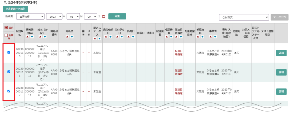 ※配送ステータス「未発注」→「出荷依頼」へ一括編集する場合※