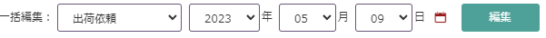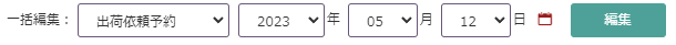 ② 一括編集で「出荷依頼予約」を選択の上、予約したい日付を選択し「編集」ボタンをクリックします。